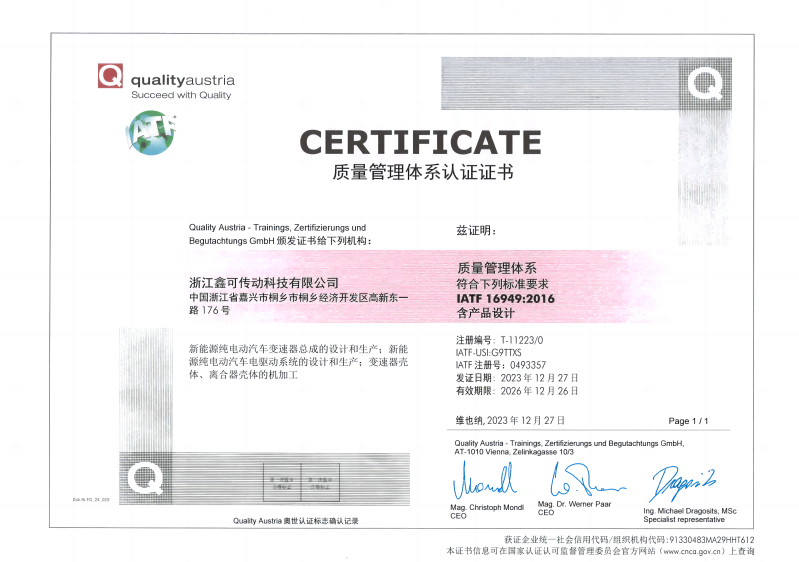 浙江鑫可傳動(dòng)科技有限公司坐落于浙江省桐鄉(xiāng)市高新東一路,占地面積153畝,總投資12.8億元,是“新能源一體化電驅(qū)動(dòng)總成數(shù)字生產(chǎn)線”基地,也是工信部2019年04重大科技專項(xiàng)課題項(xiàng)目主要研發(fā)單位。