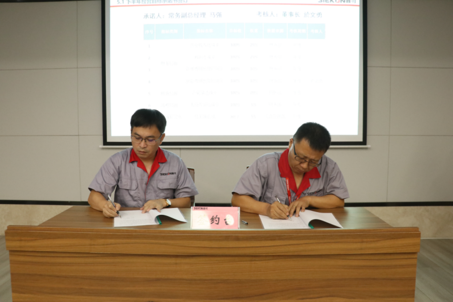 會上,董事長於文勇與副董事長兼研究院院長金建華、常務(wù)副總經(jīng)理馬強分別簽訂了2023年下半年經(jīng)營目標(biāo)承諾書,常務(wù)副總經(jīng)理馬強與副總經(jīng)理陳光耀、副總經(jīng)理龔峰、銷售總監(jiān)林文軍、財務(wù)總監(jiān)郭蓮芳、質(zhì)量總監(jiān)宋達(dá)水分別簽訂了2023年下半年經(jīng)營目標(biāo)承諾書。