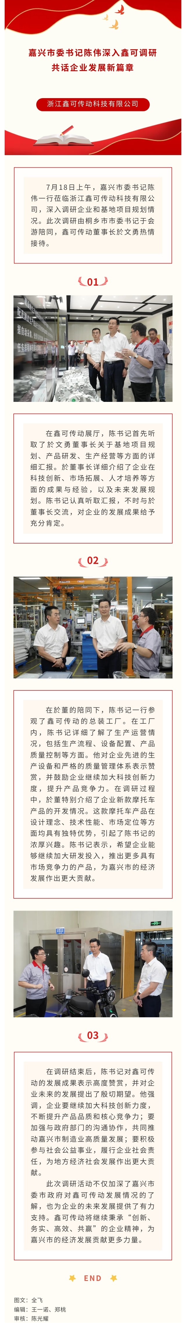 嘉興市委書記陳偉深入鑫可調(diào)研,共話企業(yè)發(fā)展新篇章 2024-07-26 08:53:36 浙江鑫可傳動(dòng)科技有限公司 瀏覽次數(shù) 1065 上一條精益改善降成本 品質(zhì)經(jīng)營(yíng)保交付|鑫可傳動(dòng)2024年中期經(jīng)營(yíng)工作大會(huì)順利召開 下一條擔(dān)當(dāng)重任|引領(lǐng)制造業(yè)高質(zhì)量發(fā)展新未來(lái)暨董事長(zhǎng)於文勇“兩新”工作推進(jìn)大會(huì)發(fā)言