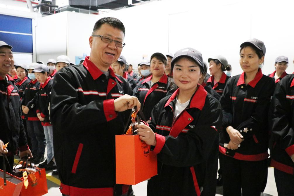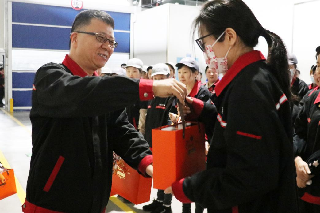 在總裝車間,浙江鑫可傳動(dòng)科技有限公司常務(wù)副總經(jīng)理馬強(qiáng)、總裝車間車間主任薛富斌為辛勤工作在各崗位的每一位女職工傳遞公司節(jié)日問(wèn)候,送上溫馨的節(jié)日祝福及節(jié)日禮品。